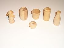 6pc. Wooden Miniature Set (Apple 1"-fire Hydrant 2"-barrel 1 5/8"-bucket 1.25"-milk Can 1.75"-milk Bottle 2")From Woodworks