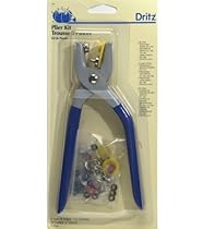 For open snaps (15, 16, 115 & 116), decorative snaps (17, 29, 25 & 105), jumbo snaps (24 & 30) and eyelets (104). Kit includes four size 16 snaps, twenty five 1/8'' eyelets and the pliers. Made by Dritz.