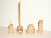 4pc. Wooden Miniatures Set (Churn 3"-honey Dipper 6"-bee Hive 3"-lighthouse 3")