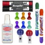 Set includes pawn magnets, cleaner, markers, eraser and clips. For use with all MessageStor(R) Magnetic bulletin boards or any magnetic dry-erase board. Magnets work on any steel surface. Markers are certified Non-Toxic. Colors may vary.